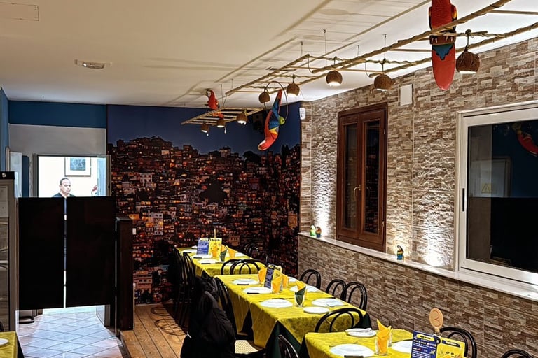 “Il nostro ristorante offre un ambiente caldo e avvolgente, ispirato alla tradizione brasiliana. Luci soffuse, colori vivaci e dettagli curati creano uno spazio accogliente e autentico, a soli 100 metri dal mare e situato nel pieno centro del Lido di Pomposa.”